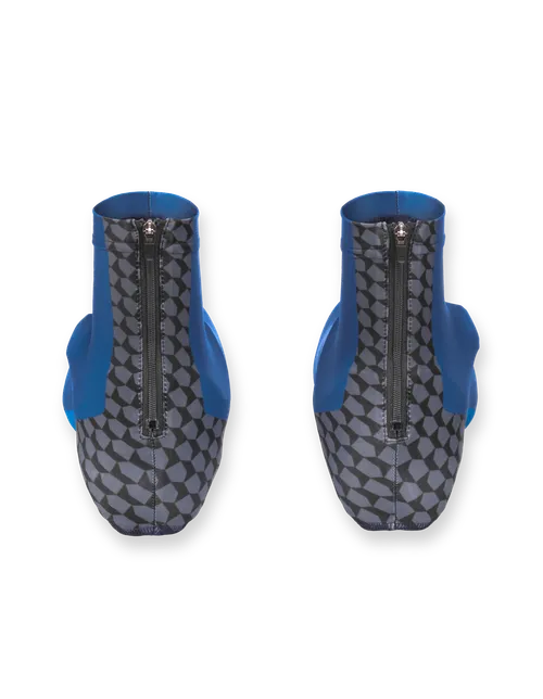 Escarpines elásticos con dos aperturas en la suela para los pedales automáticos. Cremallera para vestirlos mejor.